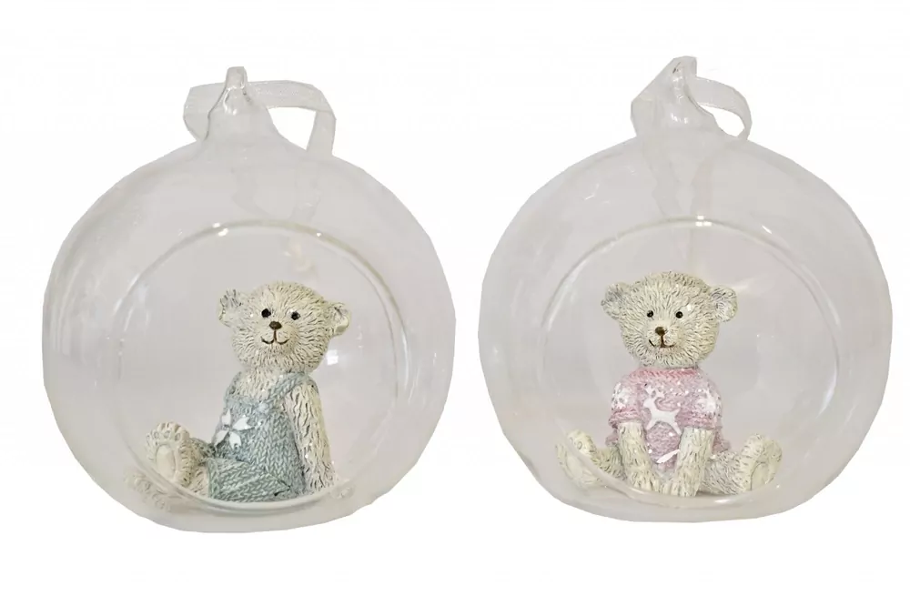 Roztomilá figurka - medvěd ve skleněné kouli. Dekorace je na zavěšení.