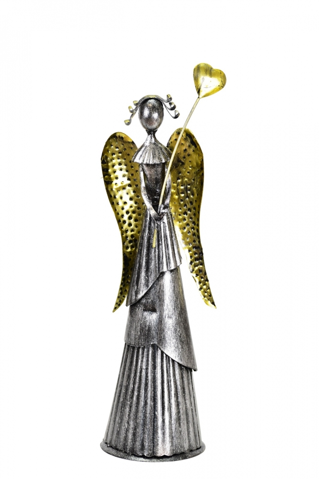 - Plechový anděl Wave stříbrný-champagne se srdíčkem, 31 cm