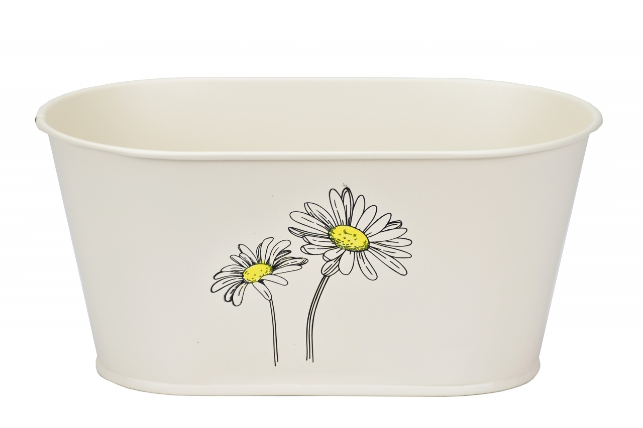 - Plechový oválný květináč krémový s kopretinou 11x23x13 cm