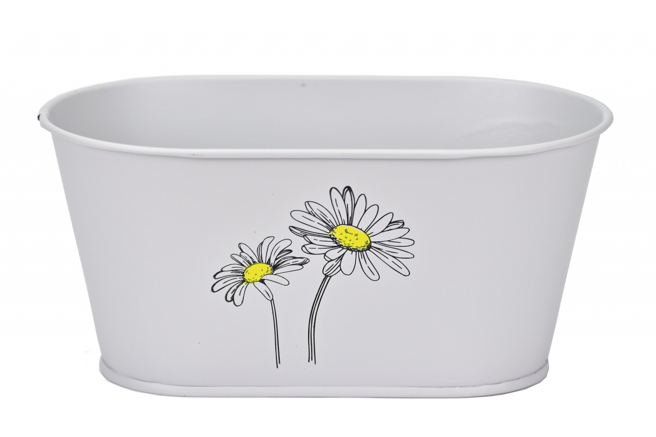 - Plechový oválný květináč šedý s kopretinou 11x23x13 cm