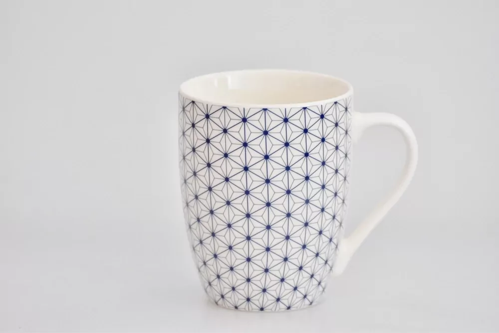 Klasický porcelánový hrnek s dekorem v modré barvě. Hrnek je vhodný na použití do mikrovlné trouby a je možné ho mýt v myčce nádobí.