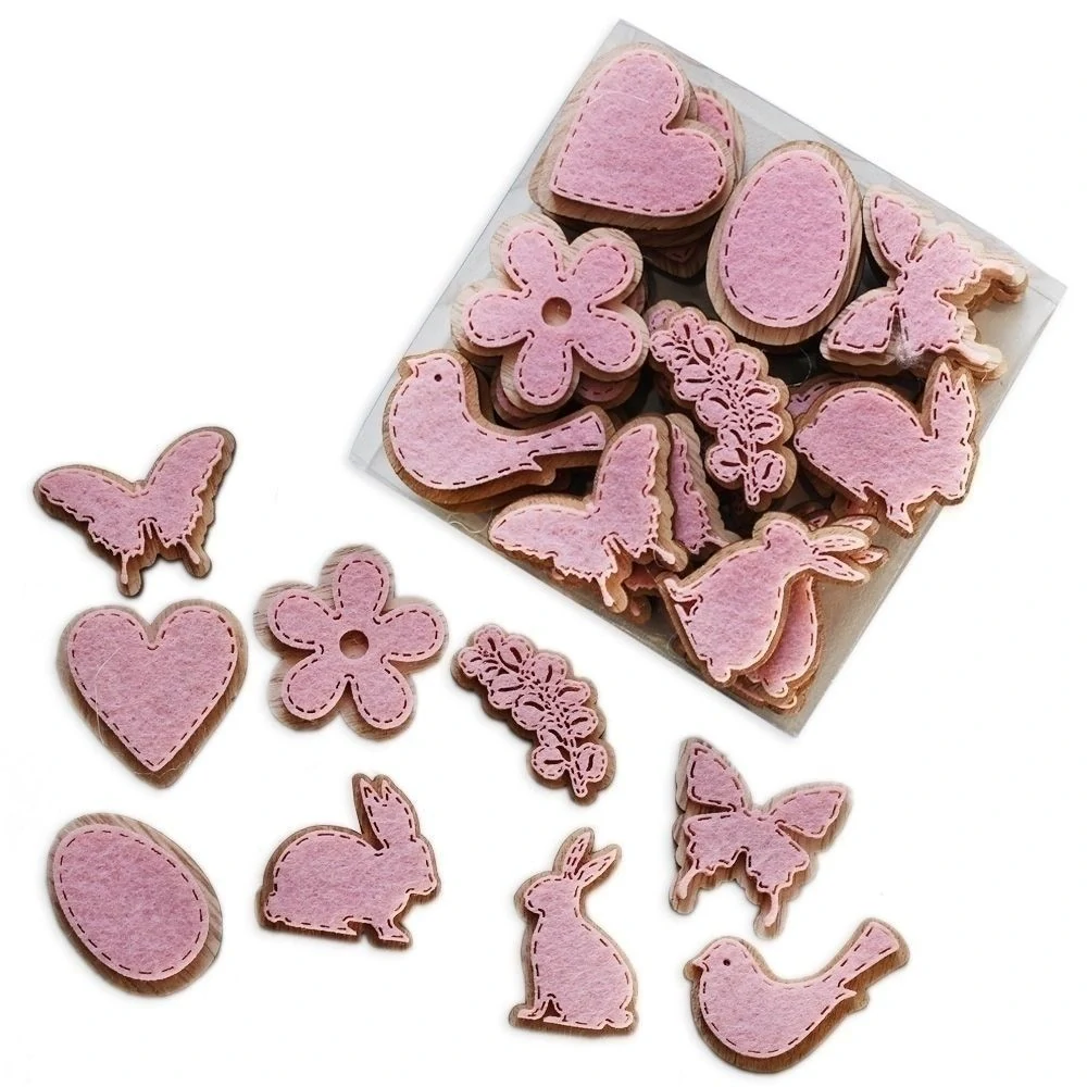 - Přízdoby dřevo 36ks/3,5cm růžová