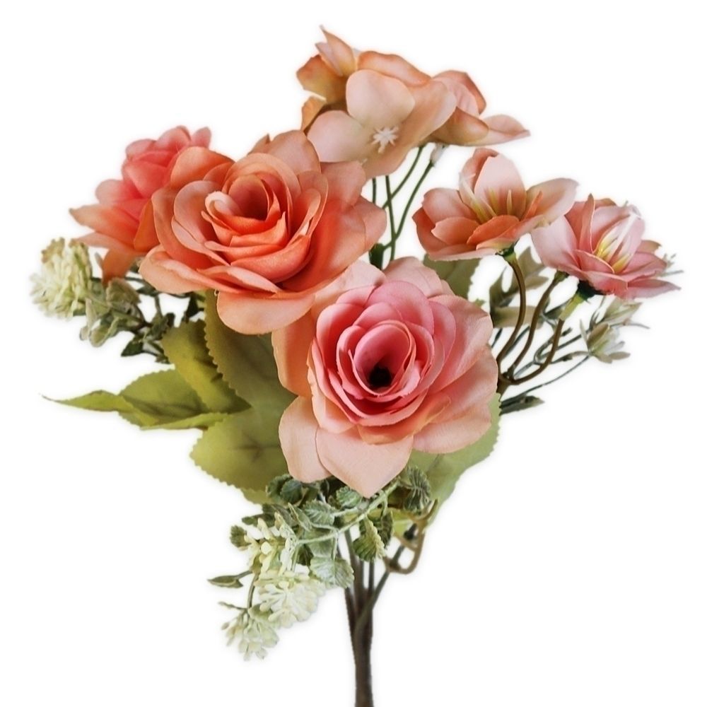 Růže kytice polyester 29cm losos