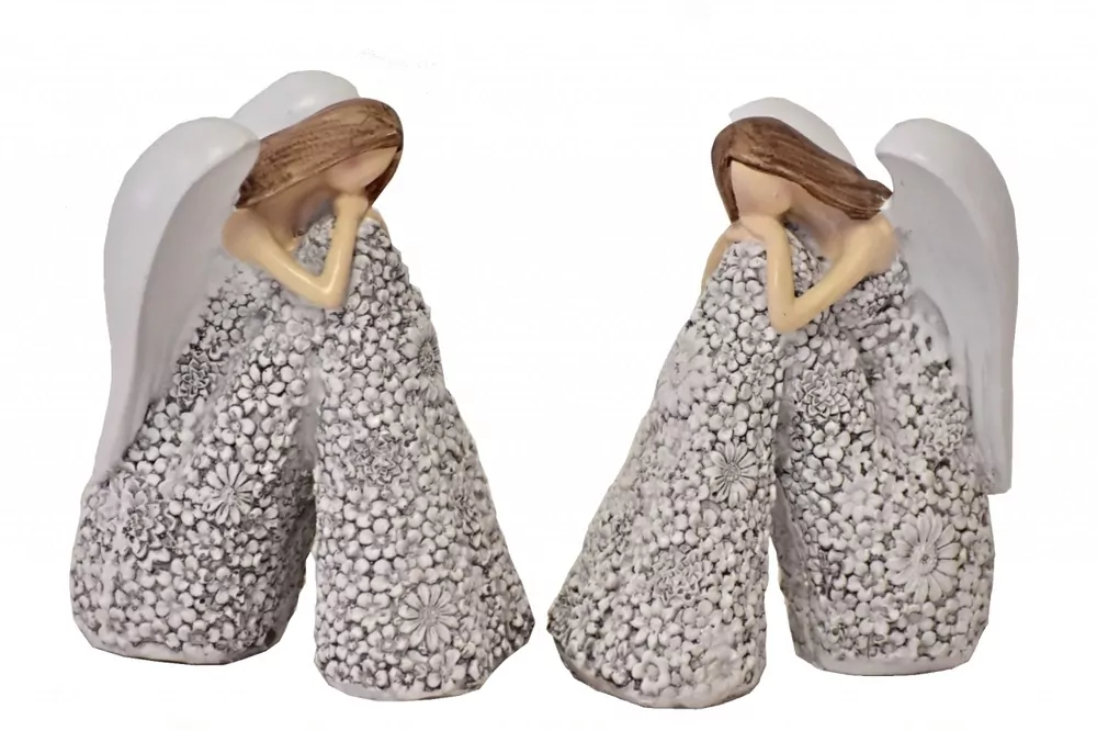- Sedící anděl Flo šedý 12,5 cm, mix druhů