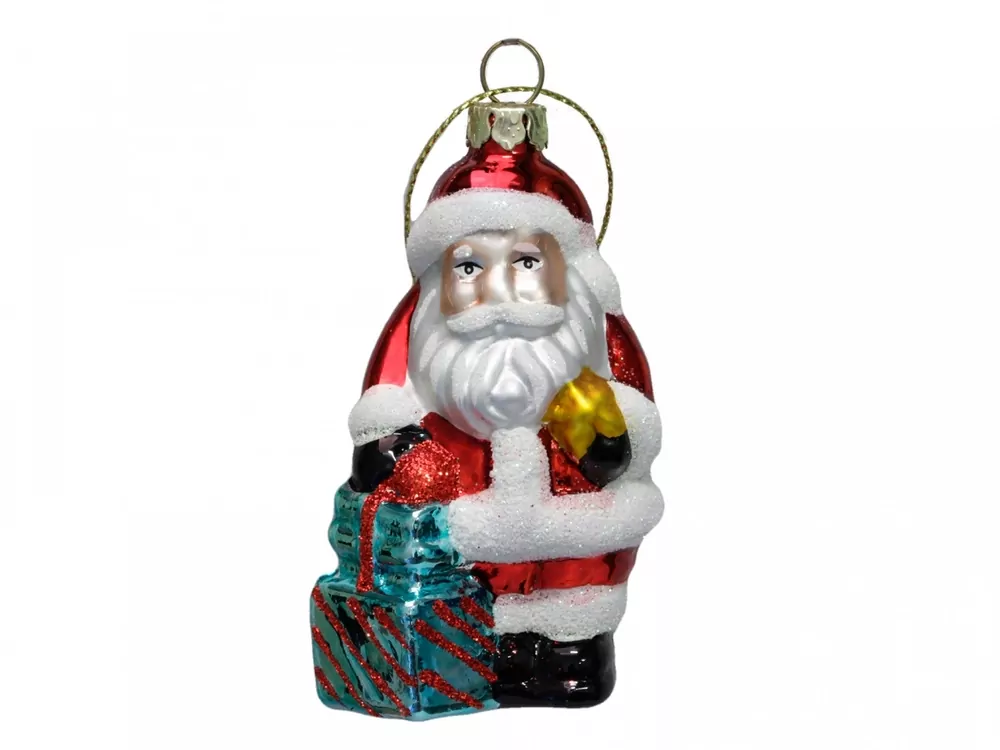Skleněná figurka Santa vynikne na každém vánočním stromečku.