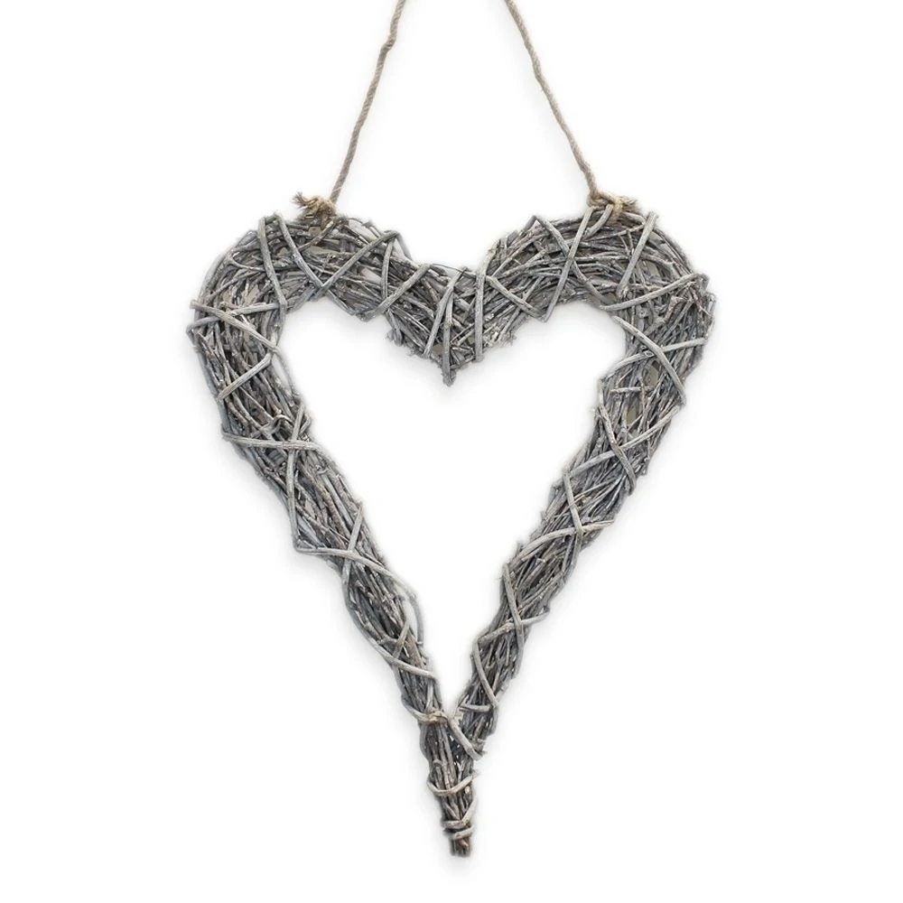 Srdce závěs proutí V65cm bílá patina
