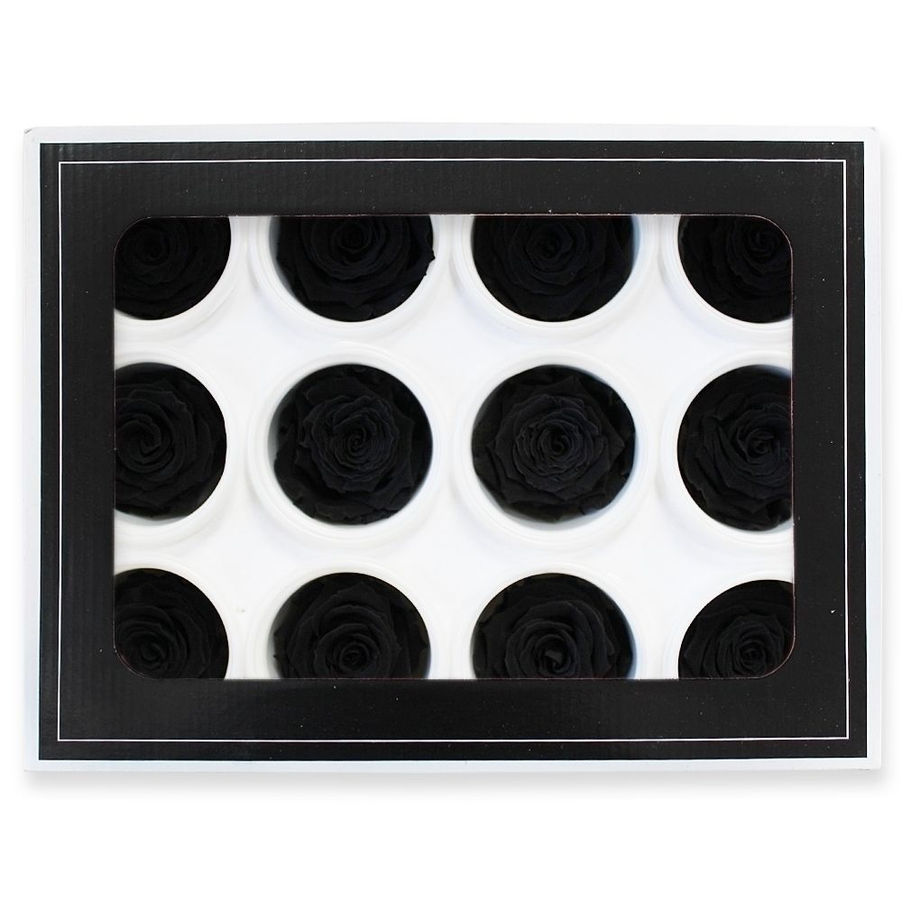 Stabilizovaná růže hlava 12ks/3,5cm černá