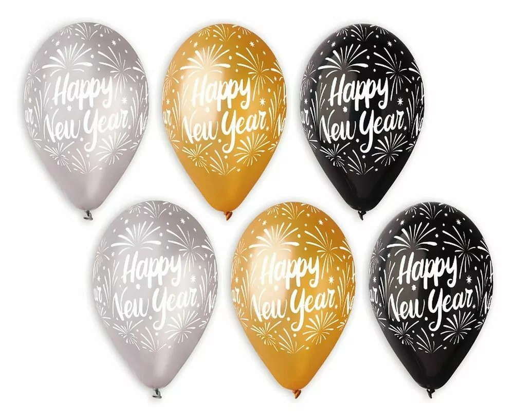 ŠŤASTNÝ NOVÝ ROK balónky, zlaté, stříbrné, černé, 12 palců / 6 ksSkladem50,70 Kč/ bal.41,90 Kč bez DPH