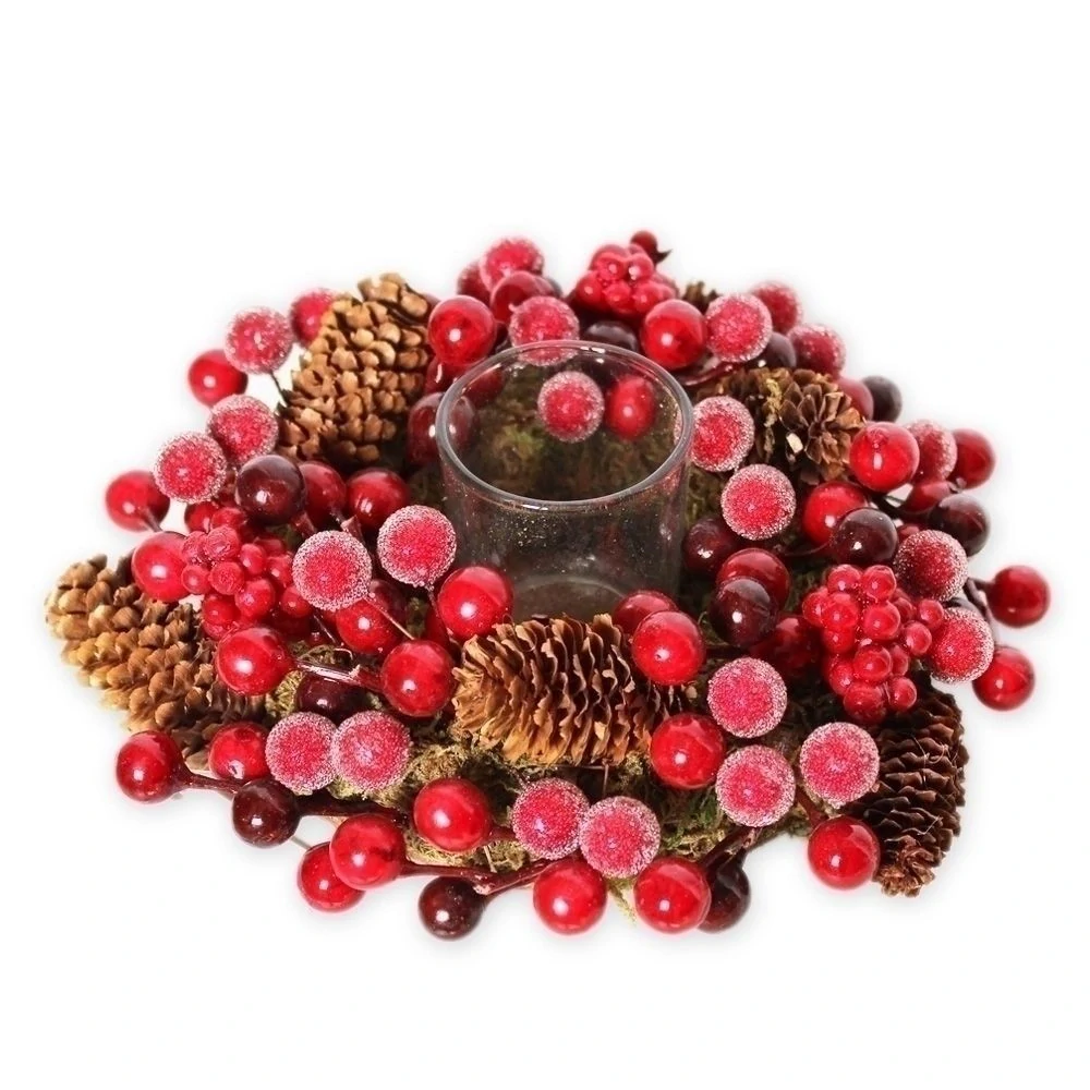Svícen jeřabina pvc/sklo pr.19cm červená