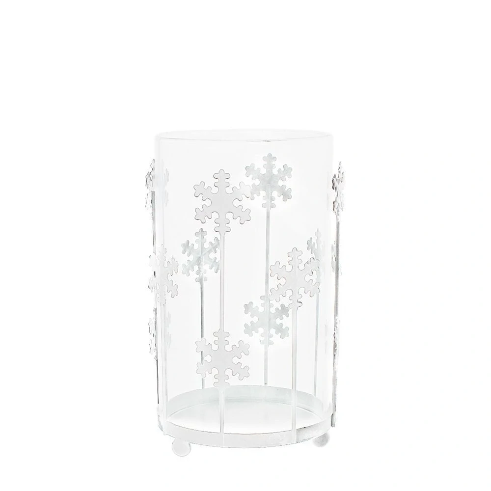 Svícen vločky sklo/kov pr.11V16,5cm bílá