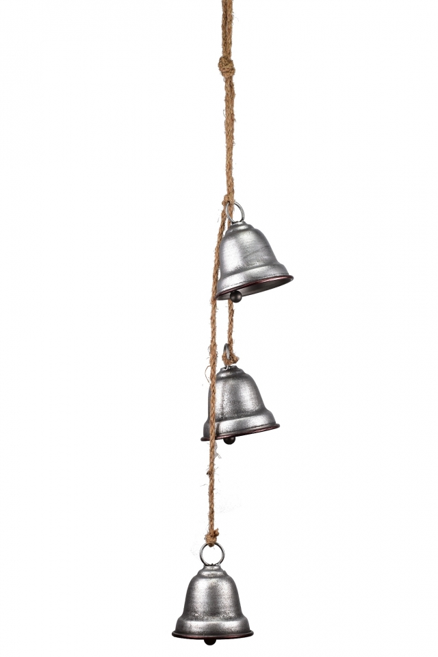 - Tři stříbrné kovové zvonky na jutovém provaze 9x7,7x63 cm