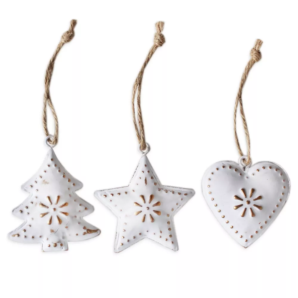 - Vánoční závěsné ozdoby plech 9ks/5cm bílá