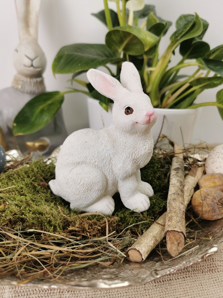 Bílý polyresinový zajíček. Stylová jarní a velikonoční dekorace.