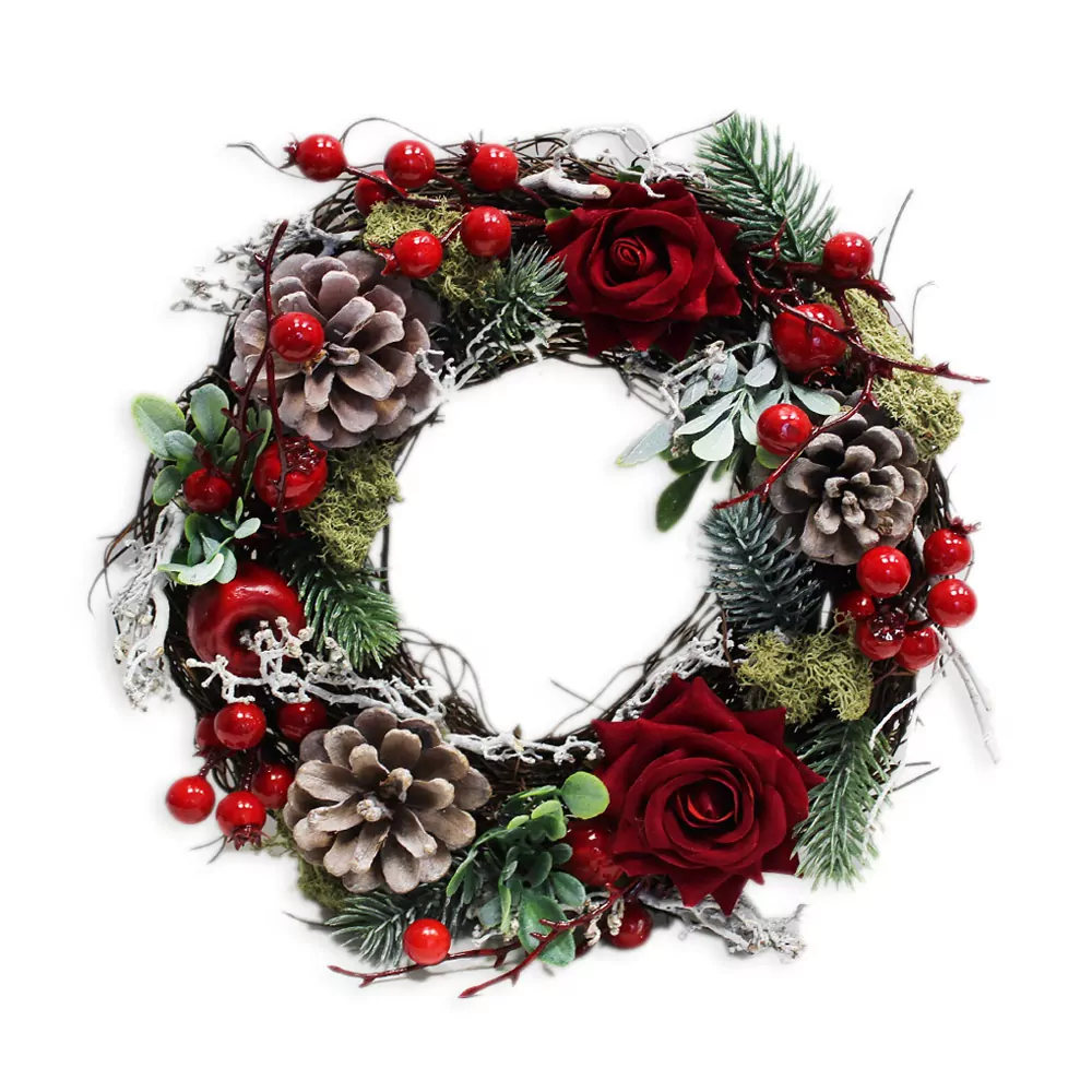 Věnec růže šišky vánoční 24cm