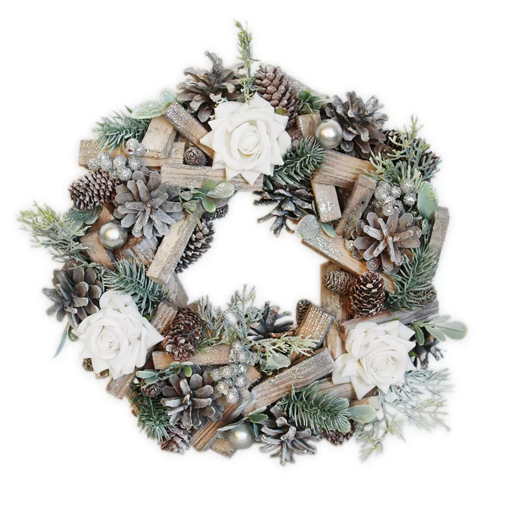 - Věnec šišky/růže pr.28cm natural/bílá