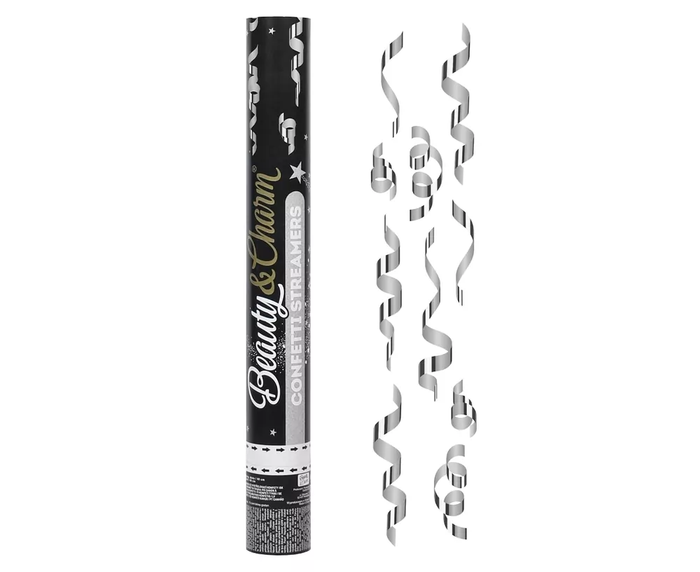 Vzduchové konfety B&C Streamers, stříbrné, 40 cm