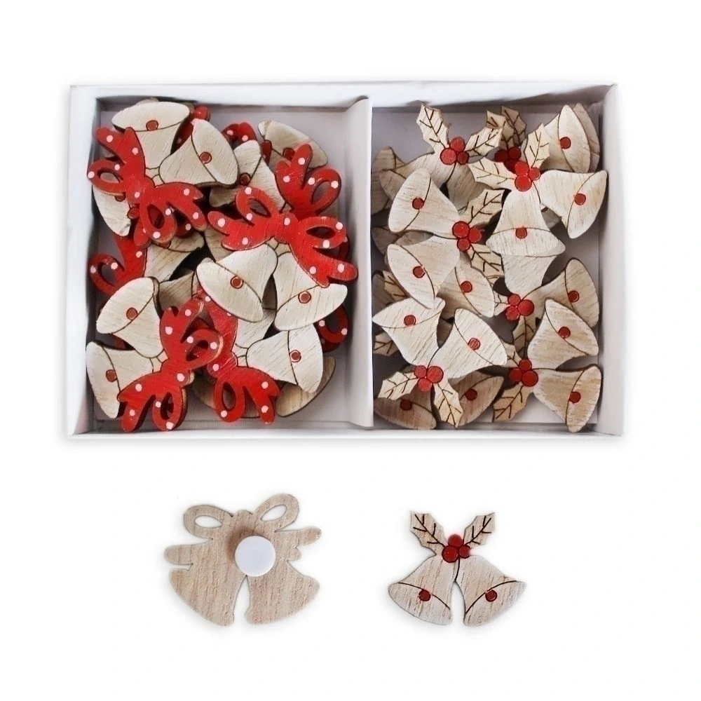 - Zvonek přízdoba dřevo 24ks/3,5cm červená